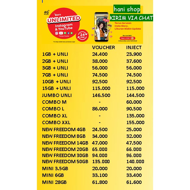 Kuota indosat new freedom combo dan unlimited shopee indonesia.